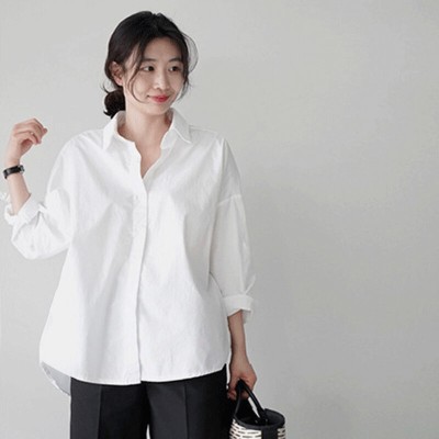 宽松的春季韩式棉质Instagram长袖衬衫